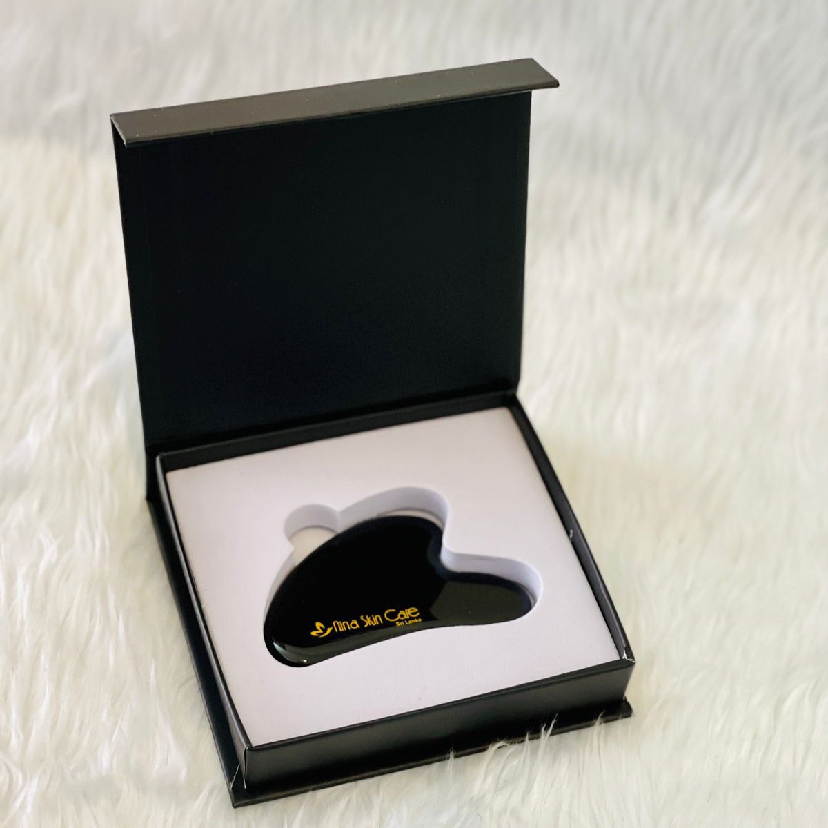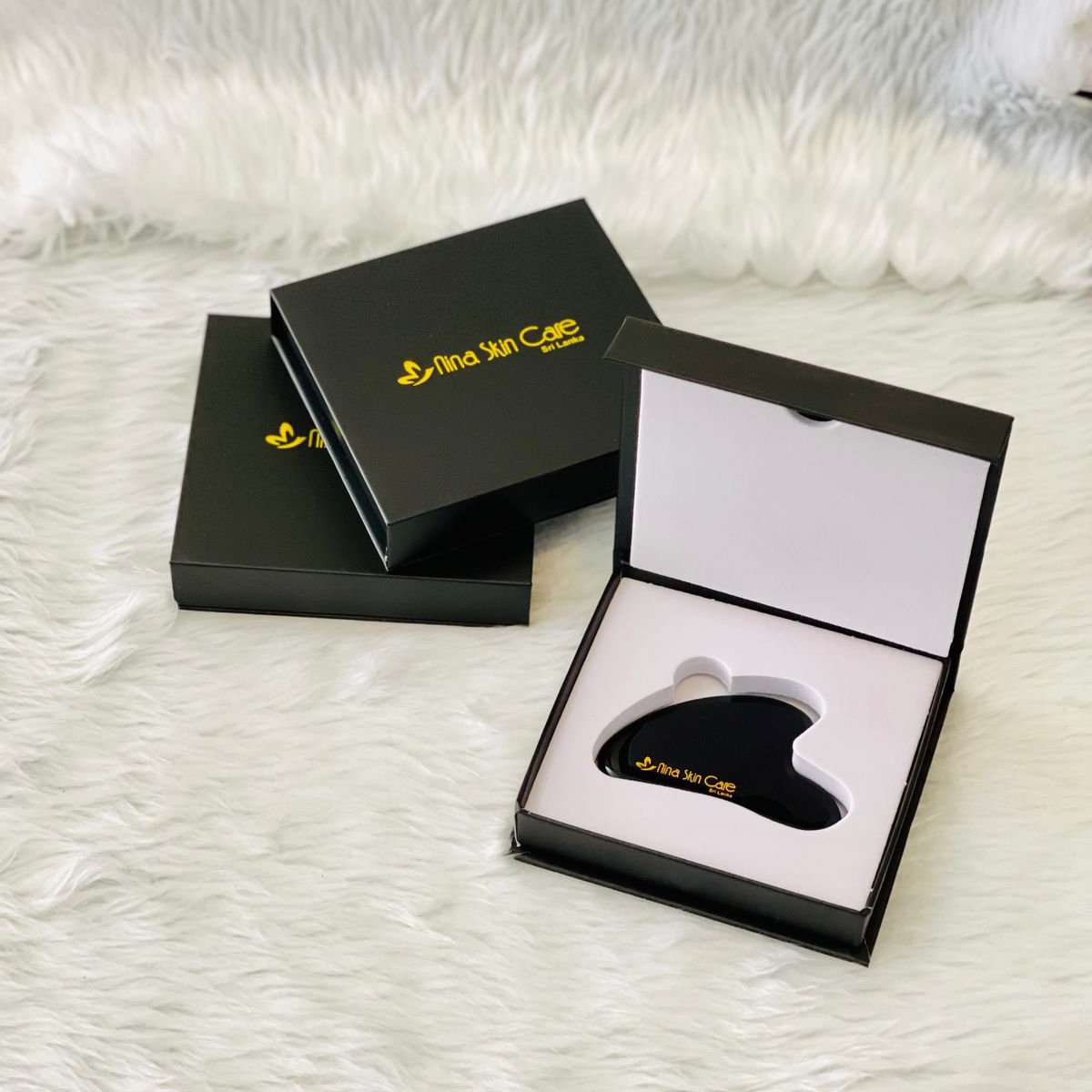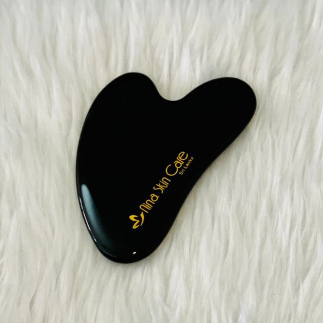 Using Ninaskincare black gua sha stone may help to improve skin tone and texture,